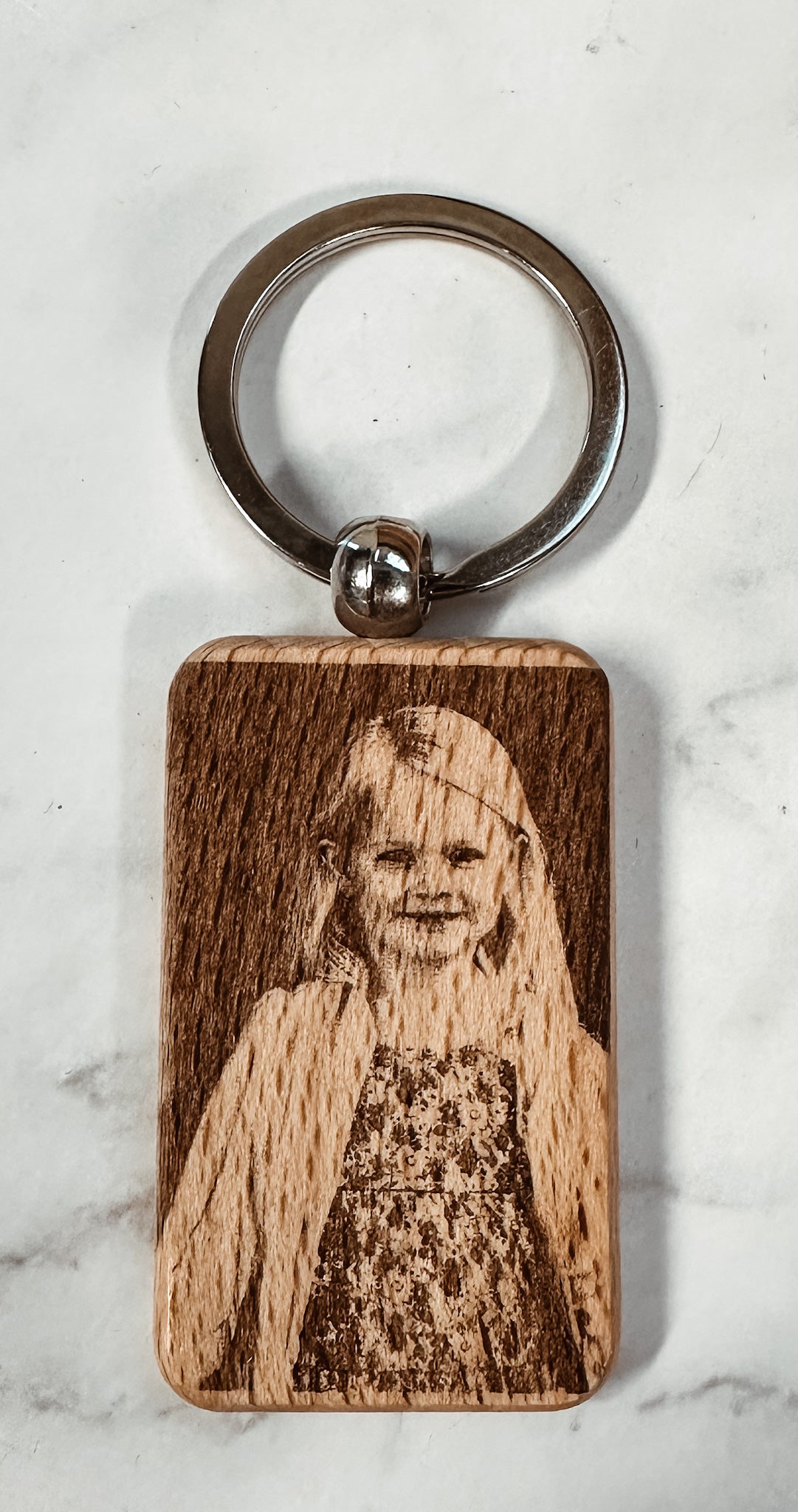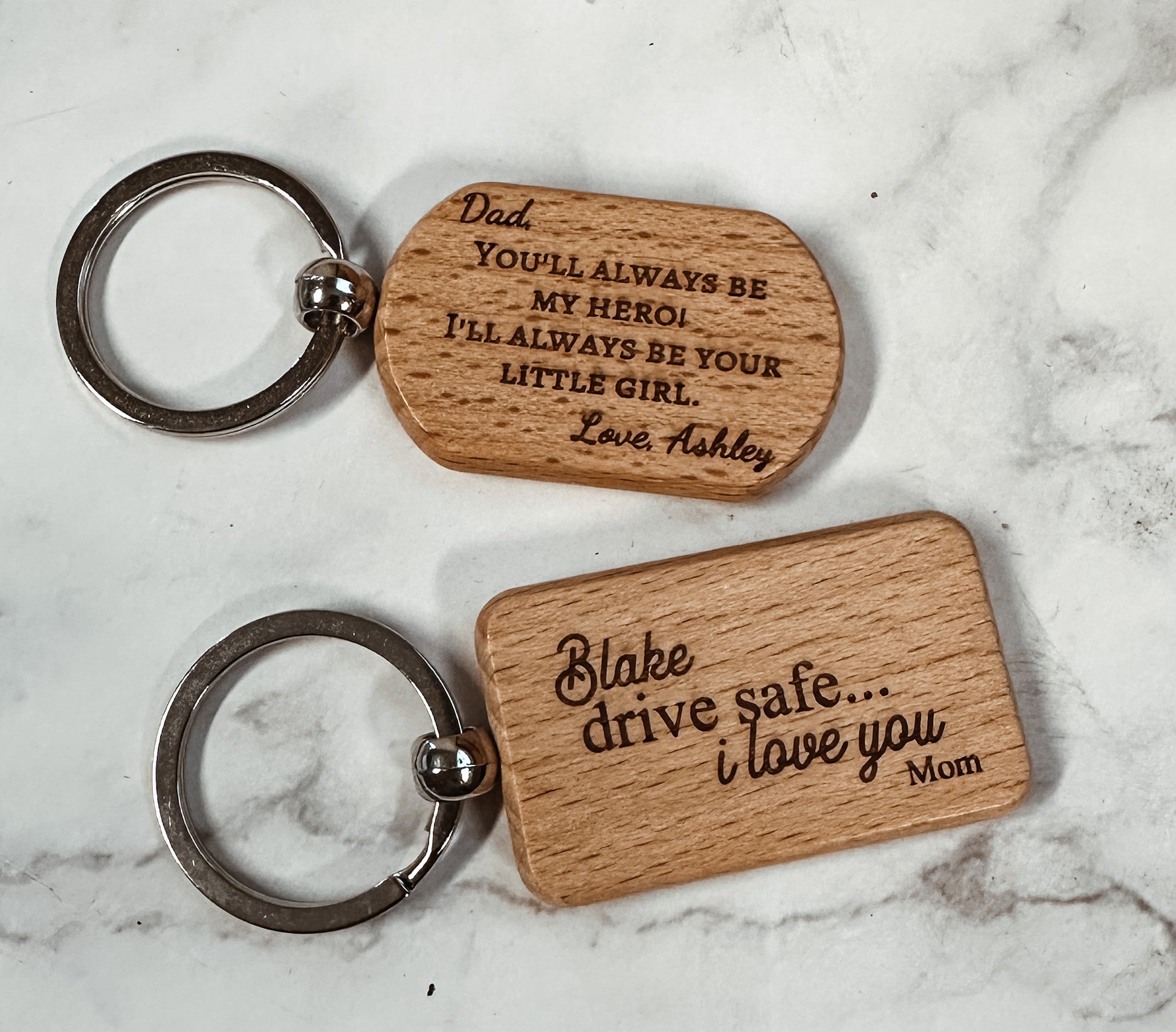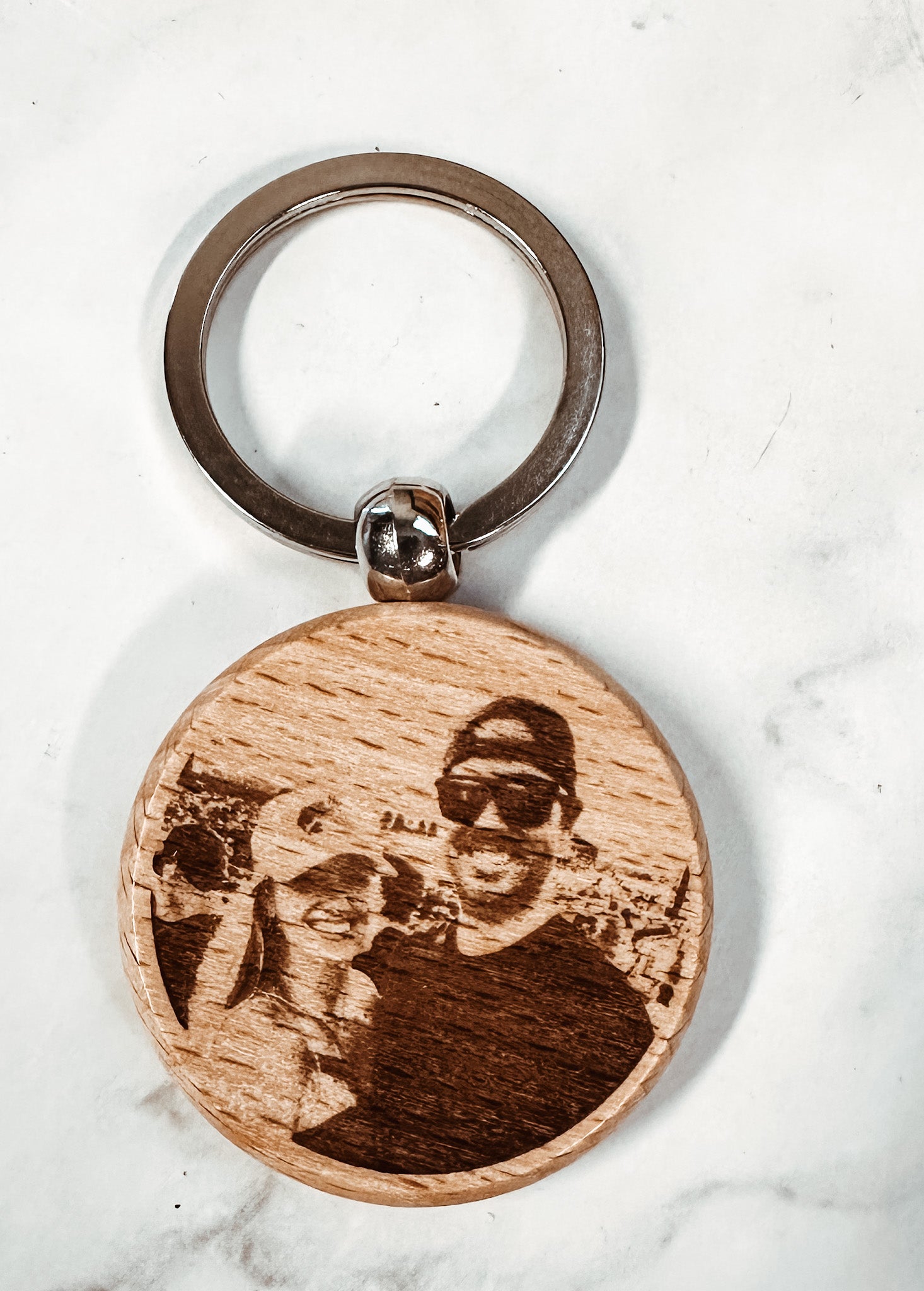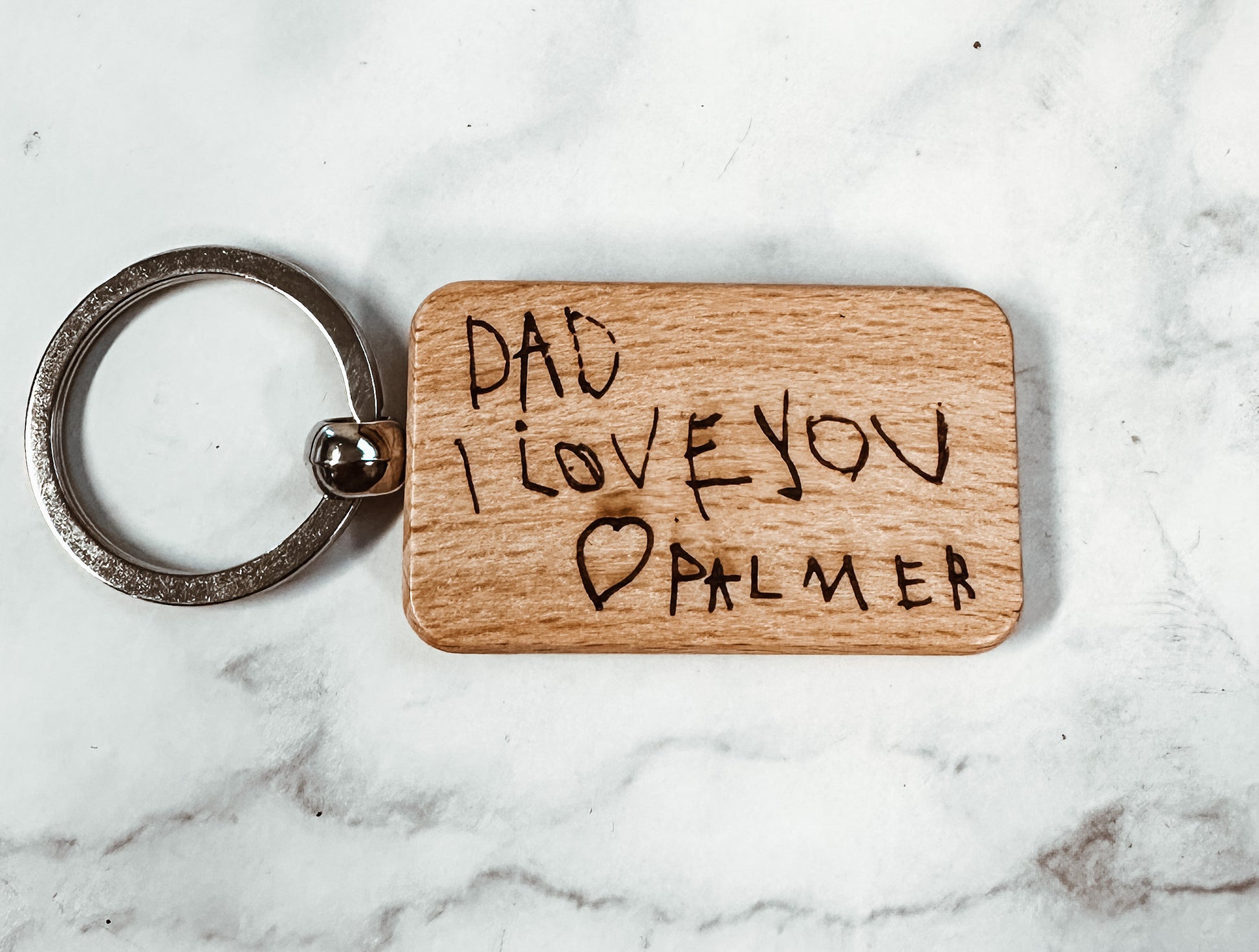 Personalize your Father's Day gift with our beautifully engraved wood keyrings. Add your own handwriting or photo for a unique touch. High-quality and minimal background photos work best.